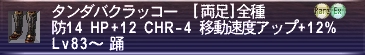 今回は踊り子が装備できる移動速度+12%の足装備タンダバクラッコーが欲しくて